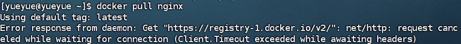 返回结果(报错:无法连接到位于国外的 Docker Hub 官方仓库):
