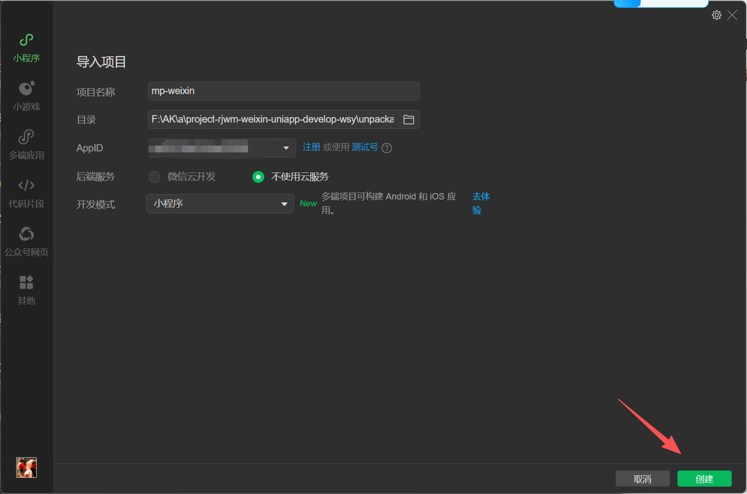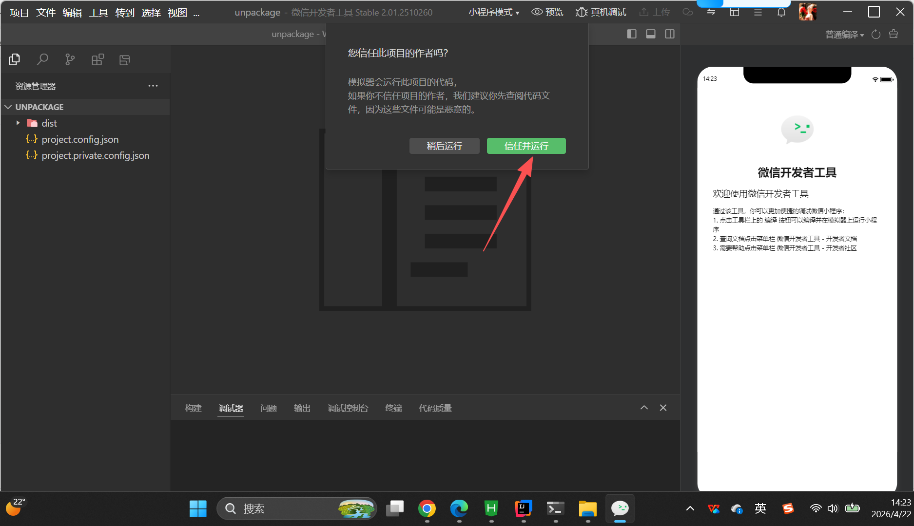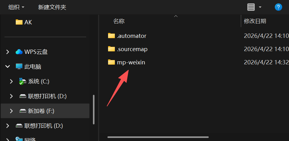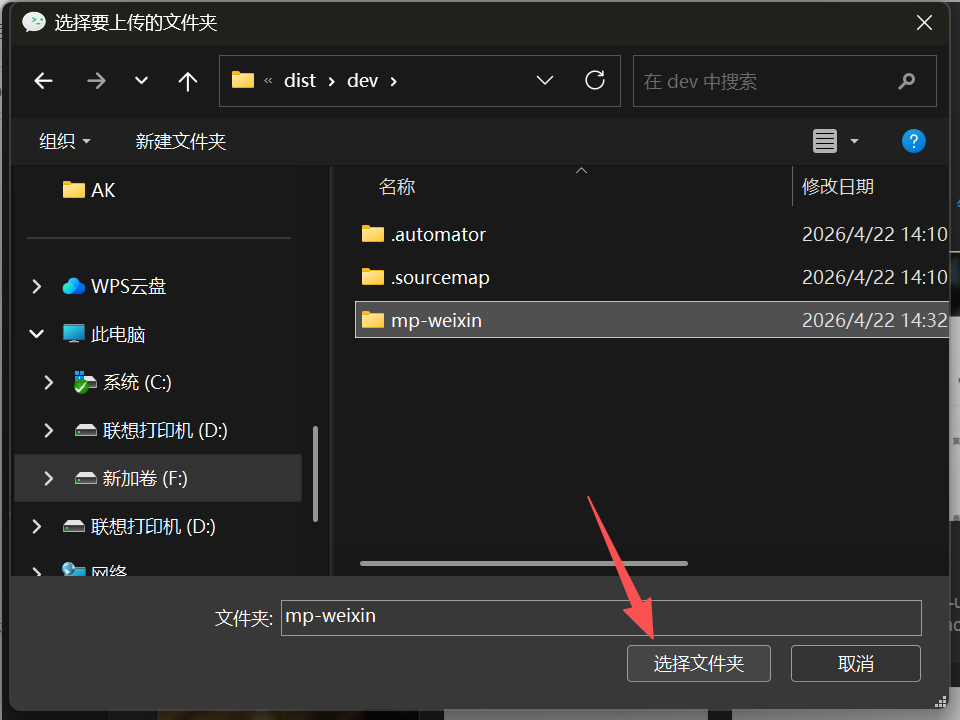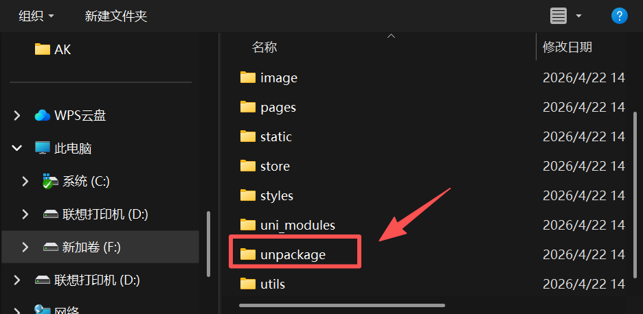 2.找到刚才再hbuilder导入的微信小程序源码目录,点击进去找到unpackage