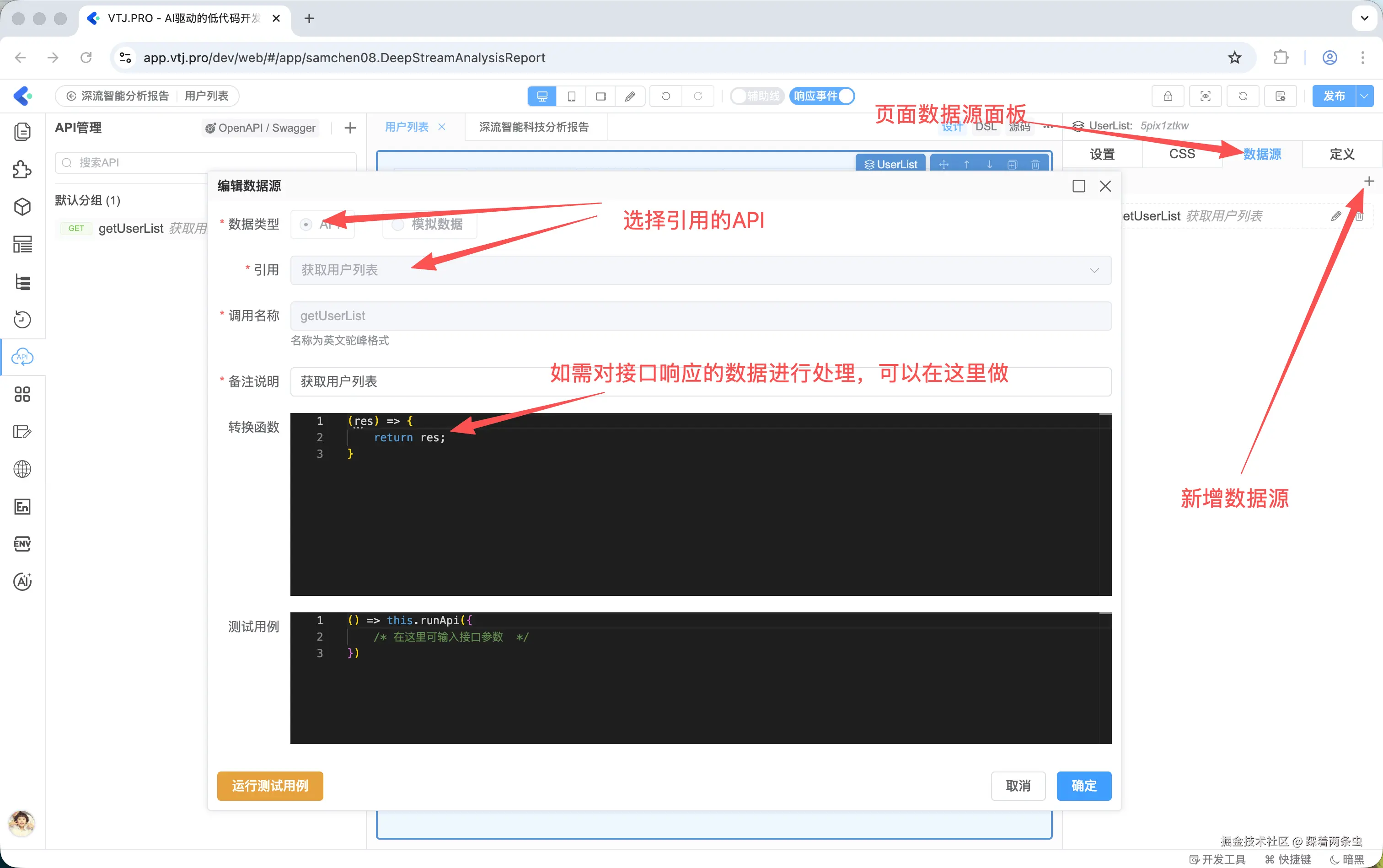 配置好 API 之后,如何让页面真正调用它?答案是通过数据源(DataSource) 。