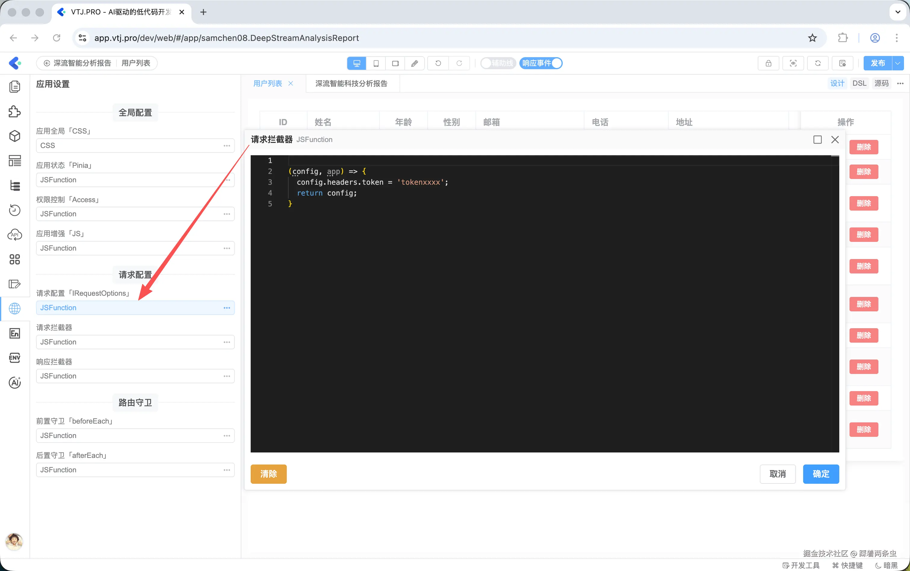 在实际项目中,API 请求往往需要一些统一的公共配置,例如设置统一的接口地址前缀、为所有请求自动携带认证 Token、统一处理接口报错等。VTJ.PRO 提供了完善的请求全局配置能力,让这些需求可以通过简单配置或少量代码一次性解决。