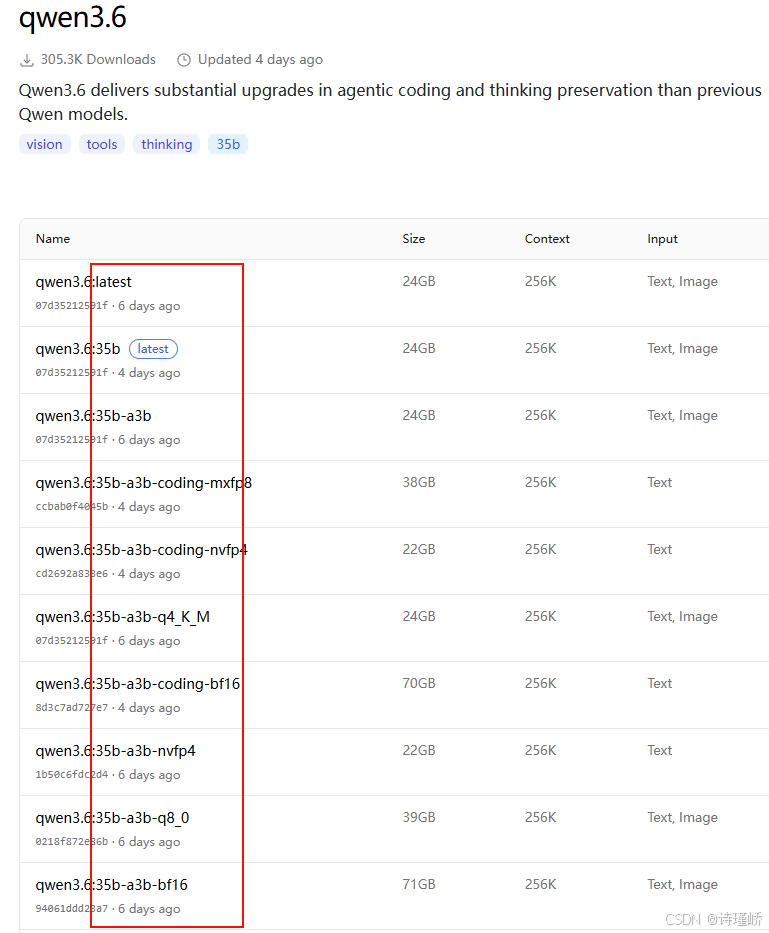 以拉取表现惊艳的qwen3.6:35b为例。