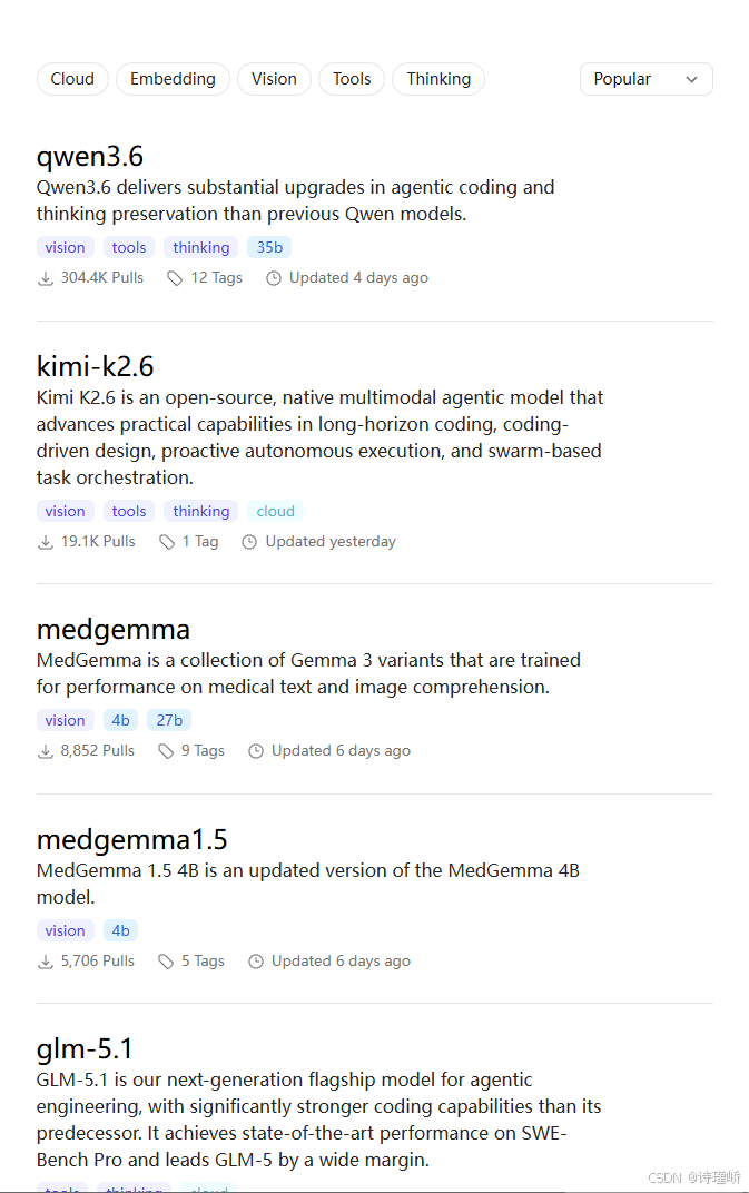 查找模型:https://ollama.com/search