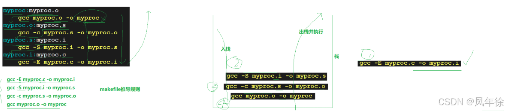 makefile会从上向下扫描,没有就入栈,有就出栈执行