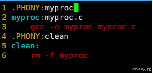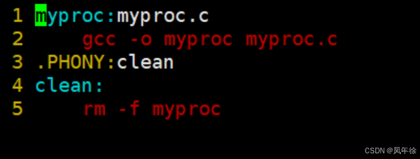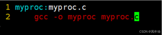 myproc是目标文件,依赖myproc.c。- 依赖方法: