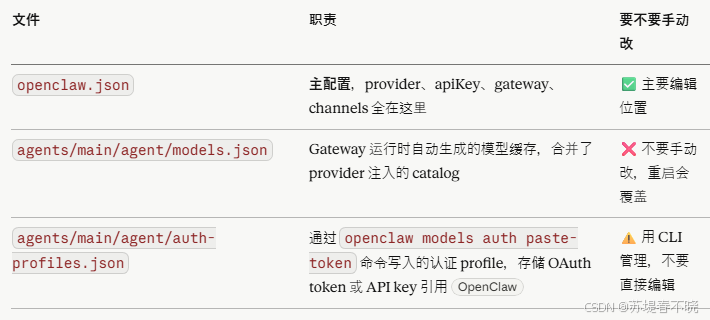 认证配置文件(OAuth + API 密钥)在~/.openclaw/agents/<agentId>/agent/auth-profiles.json,后期也可以在这个文件上修改。