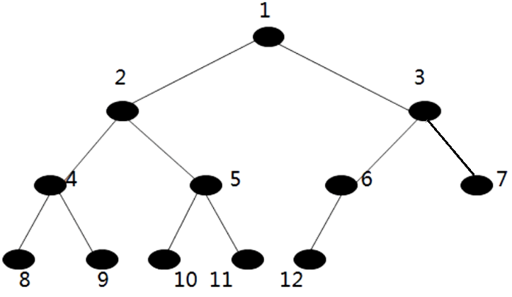 有n个节点的完全二叉树可以用有n+1 个元素的数组进行顺序存储,节点号和数组下标一一对应,下标为零的元素不用。