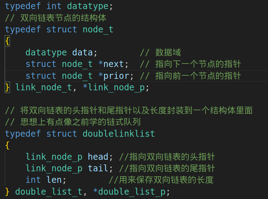 ` struct node_t *next; // 指针域:结构体指针指向下一个节点(自身结构体类型指针)`