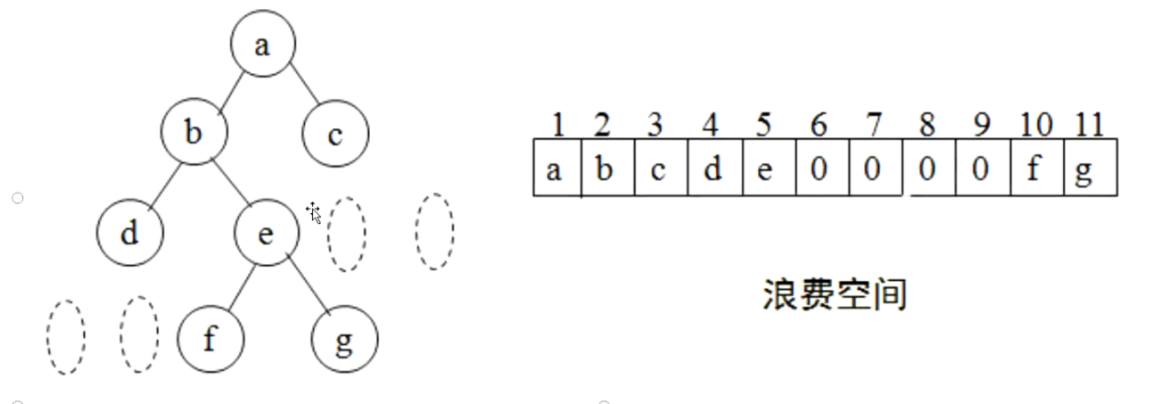 利用以上特性,可以从下标获得节点的逻辑关系。不完全二叉树通过添加虚节点构成完全二叉树,然后用数组存储,