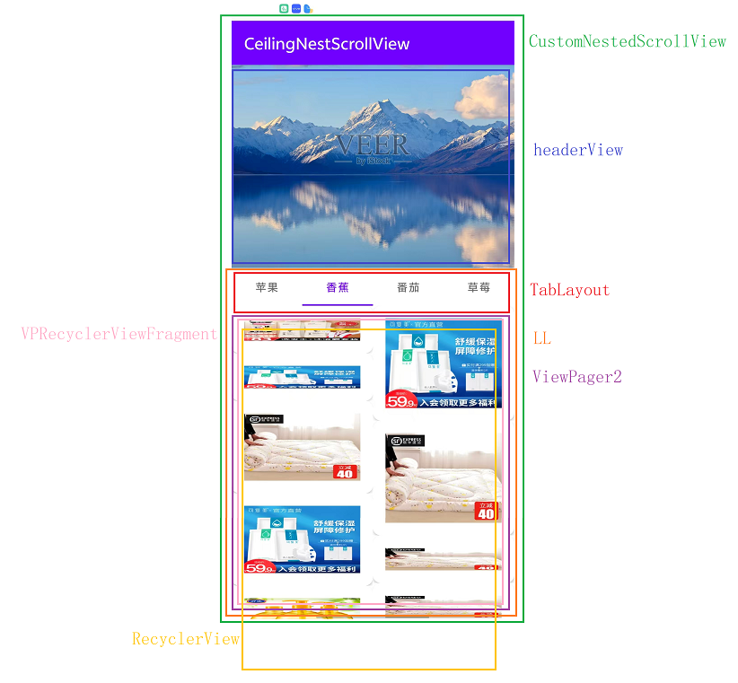 一般是长这样,进来可上下滑动,tabbar滑上去的时候吸顶在上面的导航栏底部,tabbar下面的内容可以左右滑动翻页,吸顶后再滑动滑动的是tabbar内部的rv里面的内容。