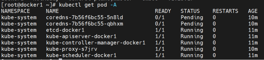 查看集群节点状态(初始节点未就绪,因未安装网络插件,后续需部署网络插件)