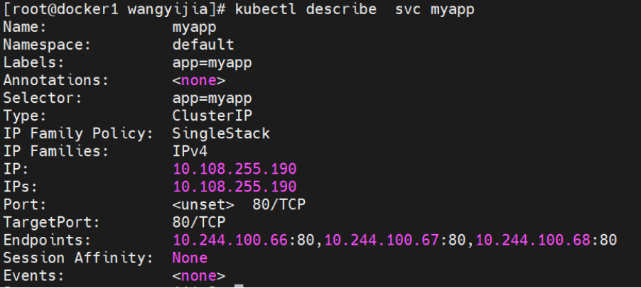 kubectl describe svc myapp