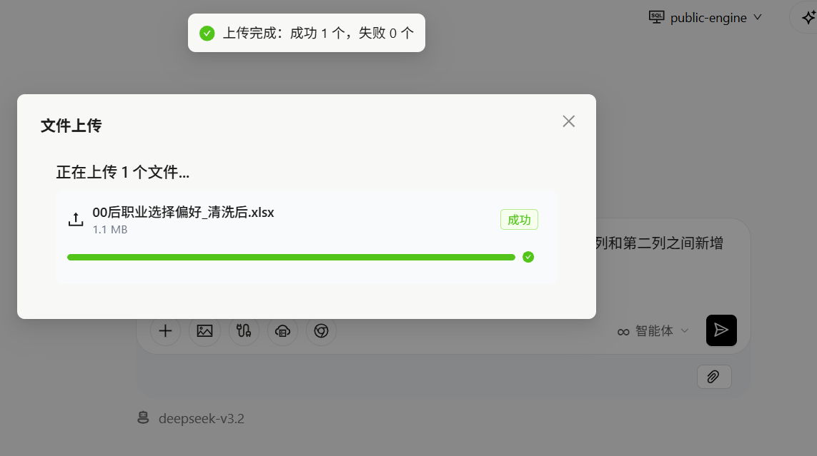 点击对话框左下角的加号上传excel文件,