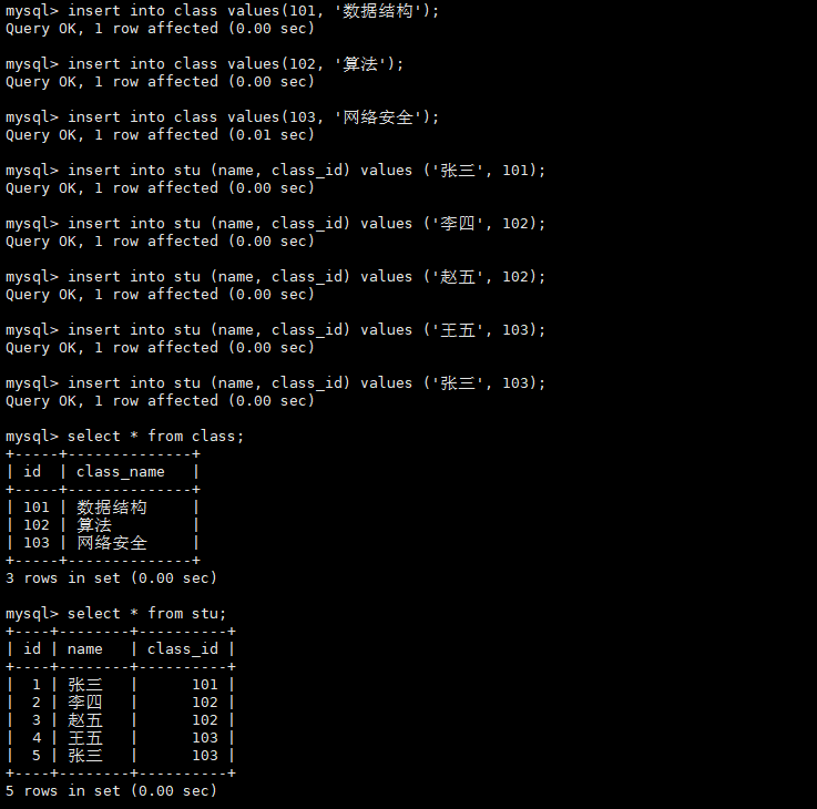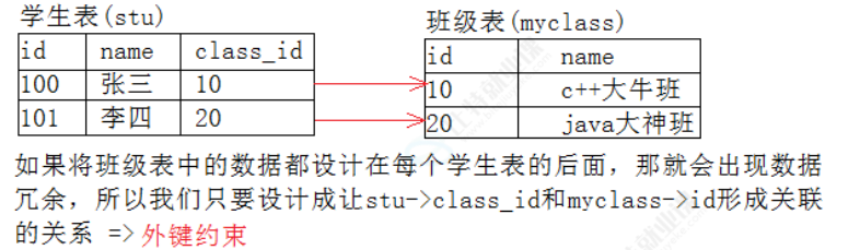 理论上,上面的例子,我们不创建外键约束,就正常建立学生表,以及班级表,该有的字段我们都有。