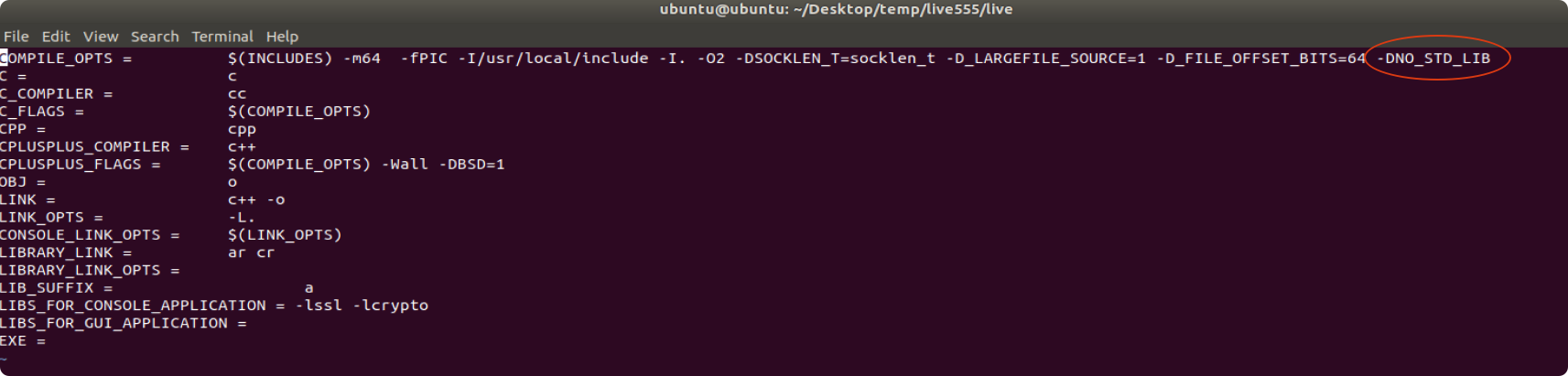 由于我的虚拟机是18.04,gcc版本比较低,需要修改一下禁止使用最新的c++特性,修改config.linux-64bit,COMPILE_OPTS中增加-DNO_STD_LIB: