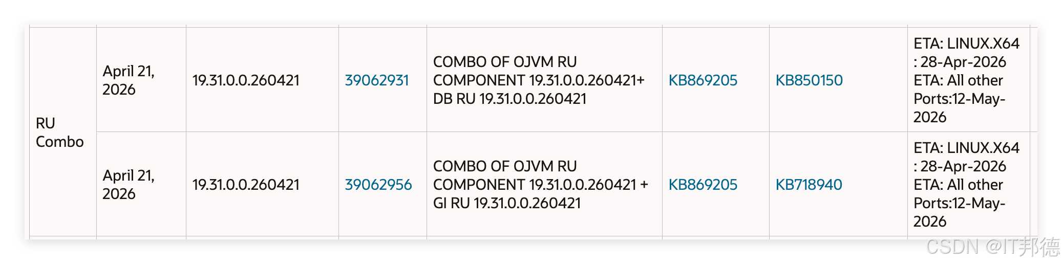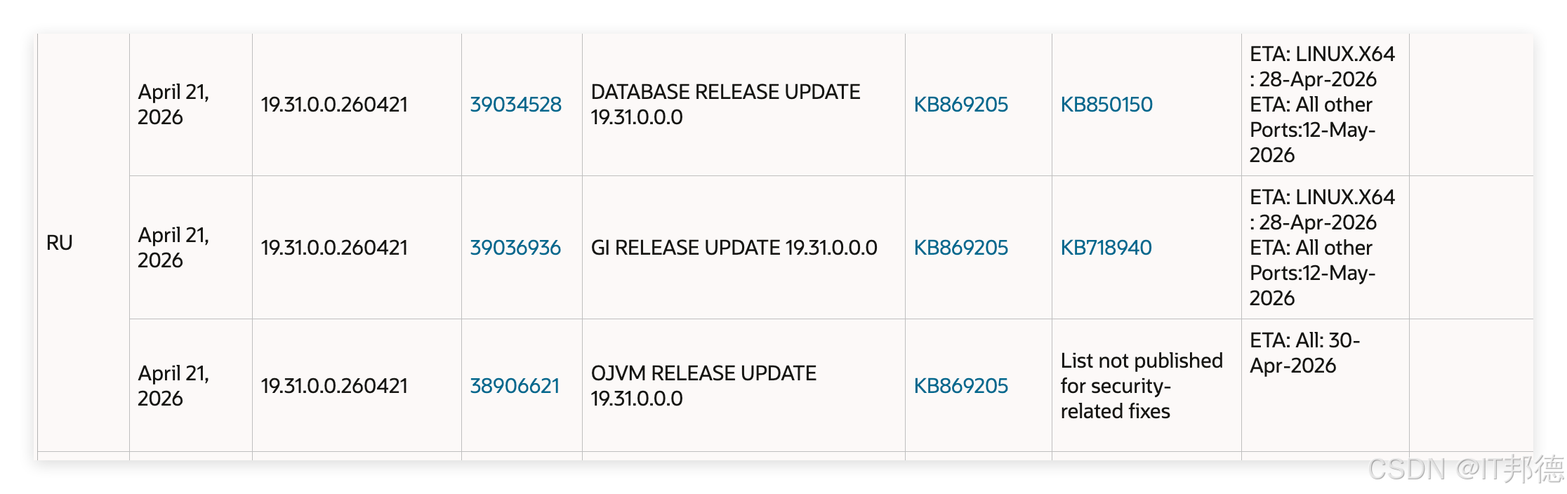 - [3.Oracle 19c 19.31 RU 补丁](#3.Oracle 19c 19.31 RU 补丁)