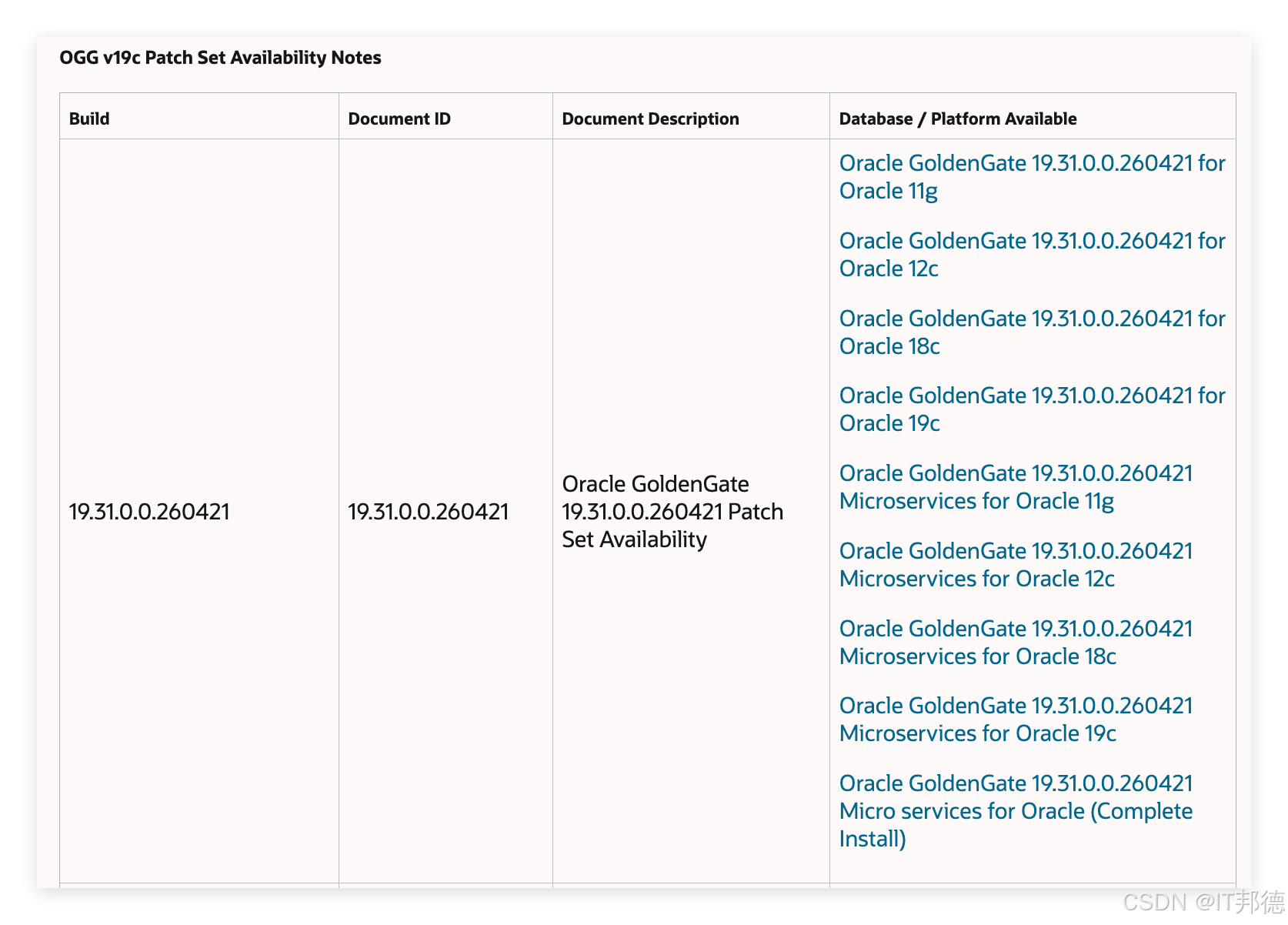 Oracle GoldenGate在23ai、21c、19C相继发布了最新 RU补丁。