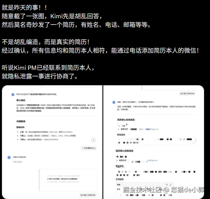 当然,实际上这也是风险点,你不能保证你发给 AI 的东西就是隐私的,比如最近就出现了类似问题,莫名其妙一个用户的简历信息出现在了另一个用户的会话,被 AI 幻觉吐了出了,也不知道是 Agent 的 session 错乱还是模型意识问题,反正数据只要上去了,就存在隐私风险, 你不能 100% 要求平台没 bug。