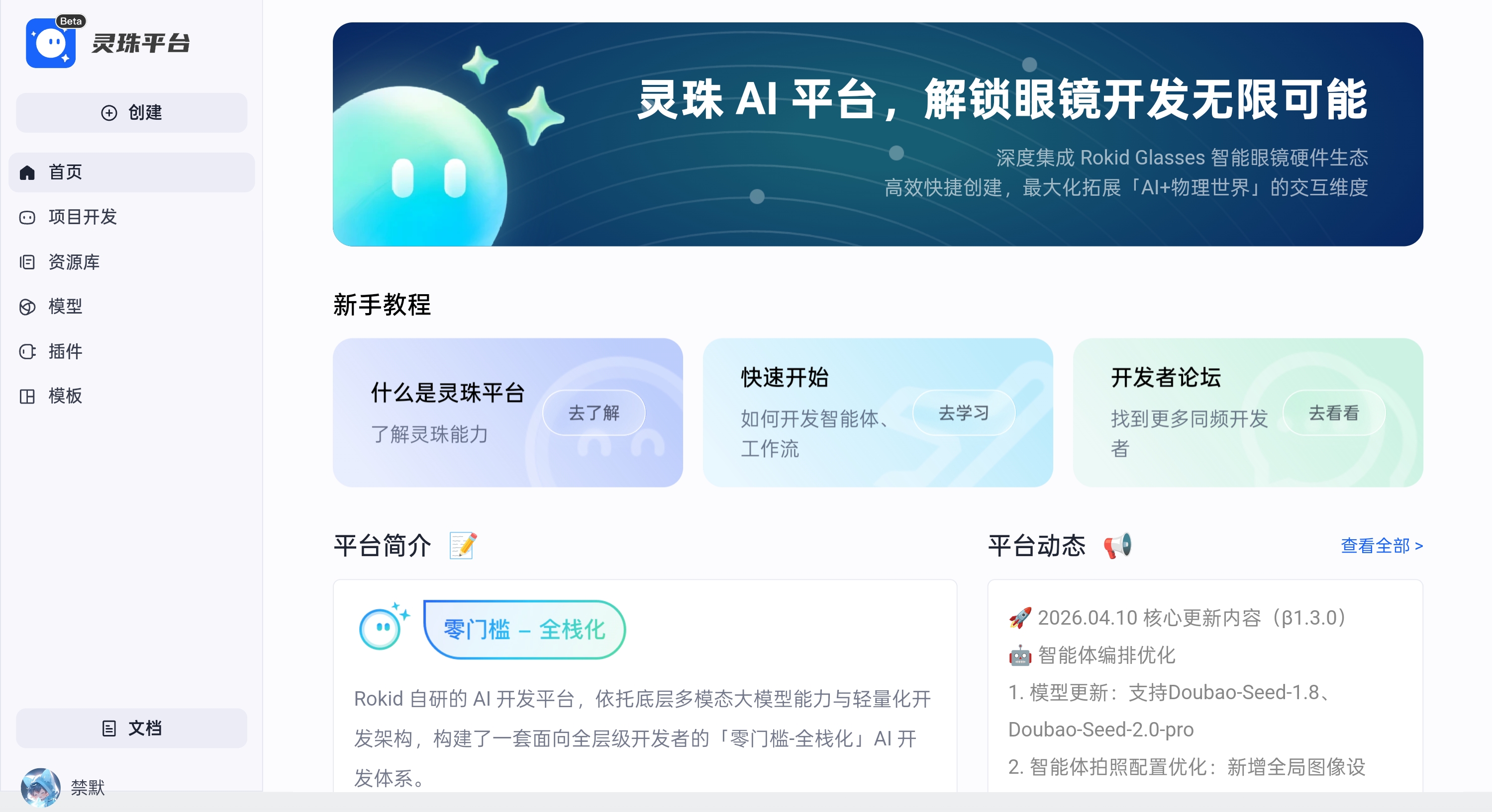 开发平台:Rokid灵珠AI平台(https://rizon.rokid.com/space/home)