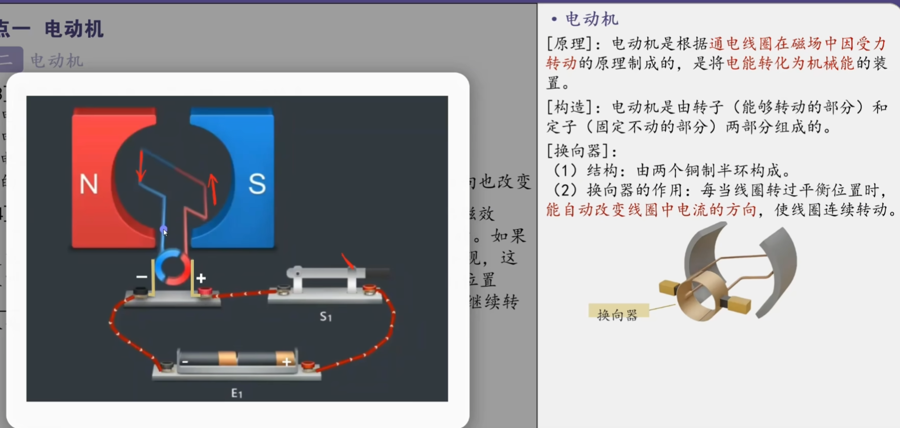 电动机 : 通电后能转动的机器,,电能转换为机械能