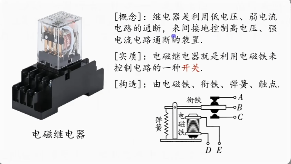 - 线圈+铁芯 : 铁芯被磁化后,磁性会大幅增强,,能吸铁,,,断电退磁,,