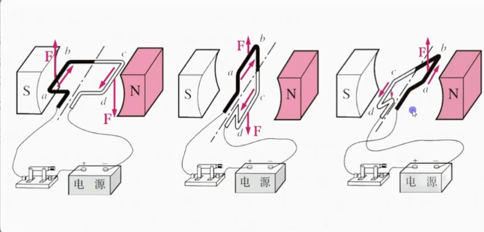 左手定则: 伸开左手,让磁感线传入手心,四指指向电流方向,大拇指就是手里方向