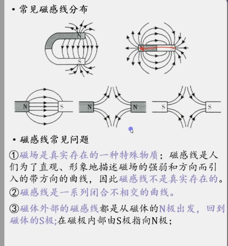 磁场:磁体周围存在一种物质,能让磁针偏转,,该物质即磁场