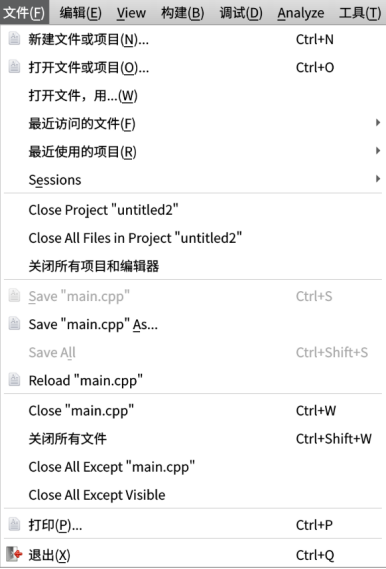 - 在成功打开Qt Creator欢迎界面(如图3)后,点击左上角「文件」菜单(如图4),选择「新建文件或项目」(如图5),或使用快捷键Ctrl+N快速打开。