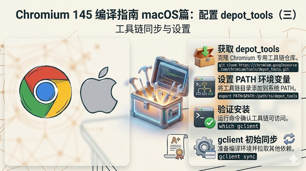 depot_tools 的成功配置,标志着我们已经完成了 Chromium 145 编译的全部"内功修炼"。从第一篇的硬件与操作系统确认、第二篇的 Apple 原生 Xcode 部署,再到本篇 Google 专属工具链的搭建,我们已经构筑起了一套无坚不摧的跨平台构建体系。