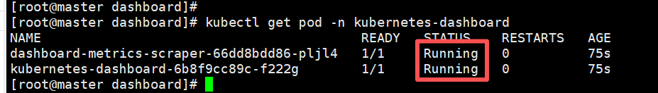kubectl get pod -n kubernetes-dashboard
