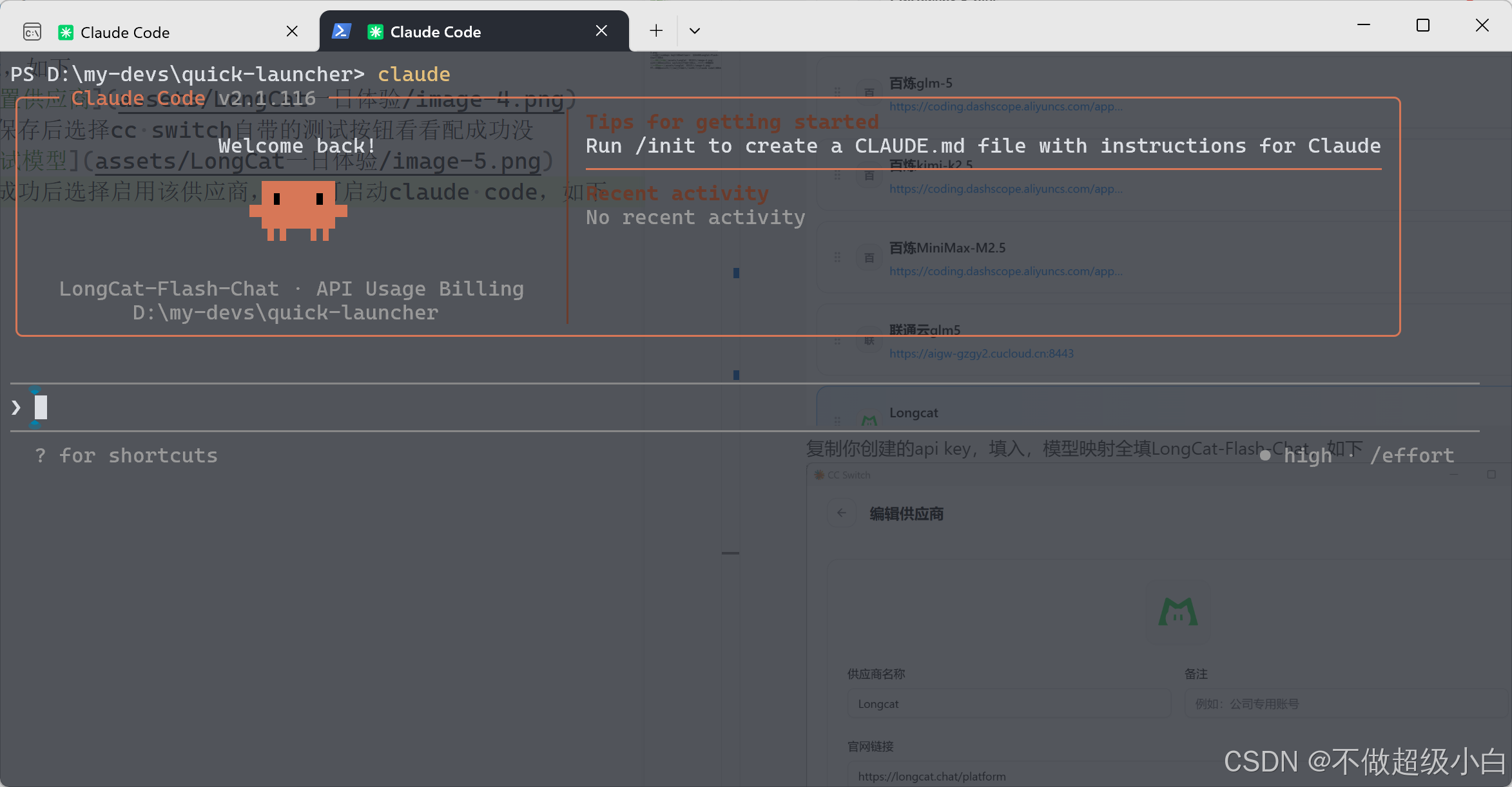 弹出成功后选择启用该供应商,随后可启动claude code,如下