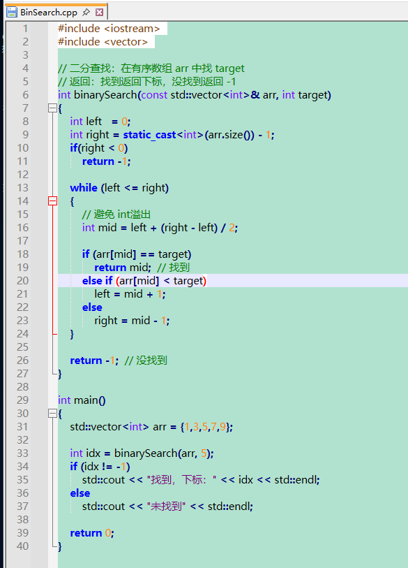 return mid; // 找到
