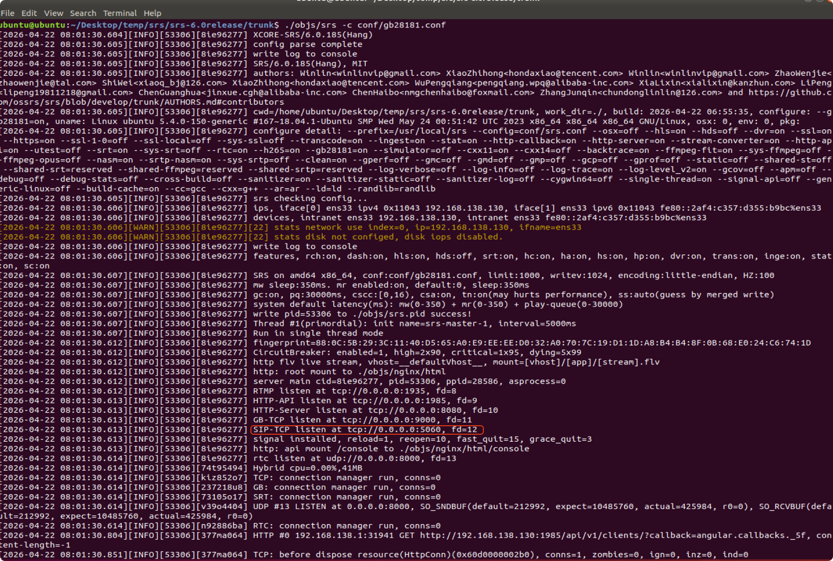 这次在ubuntu中搭建一个srs音视频服务器,使能gb28181功能,win10中使用一个客户端连接服务器推流。