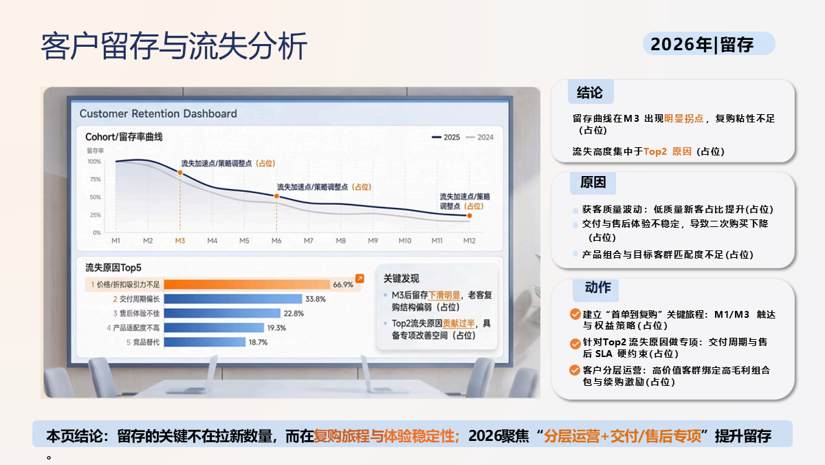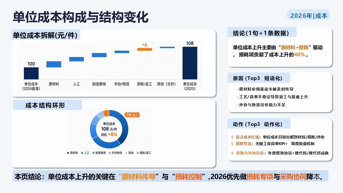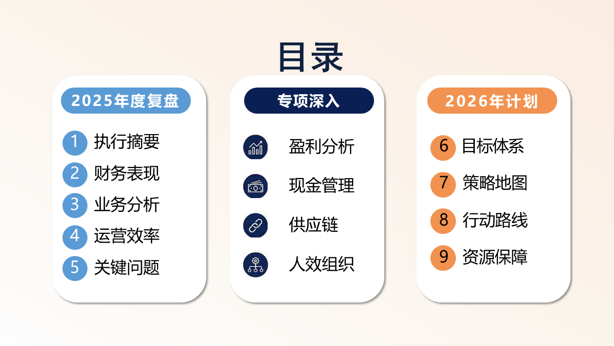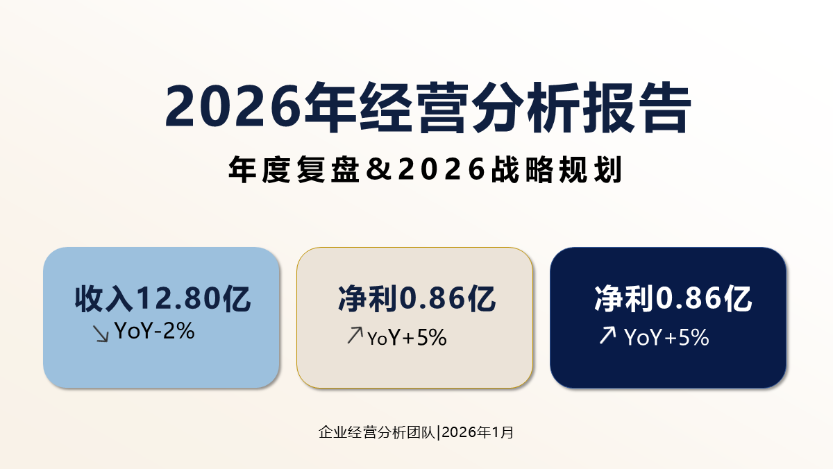 兼具专业性与实用性,可直接用于年度经营复盘、战略规划制定、经营会议汇报与绩效考核,帮助企业统一经营语言、提升决策效率,是落地精细化经营、保障年度目标达成的核心工具。