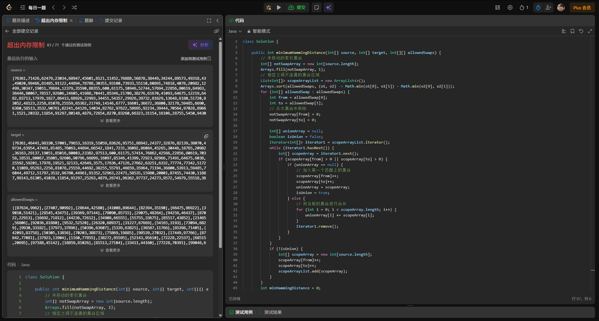 然后想着使用int数组来替换Set等高级容器操作,效率应该会有提升,然后又遇到了超出内存限制。