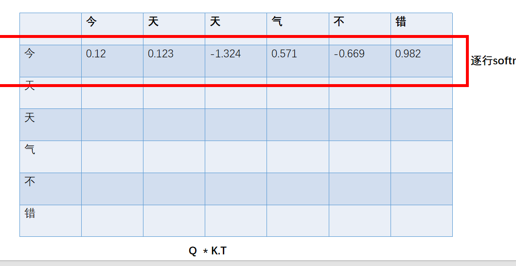 Q*K的转置 是L*L的矩阵,形成一个如下矩阵