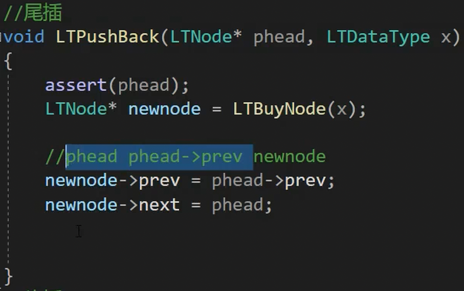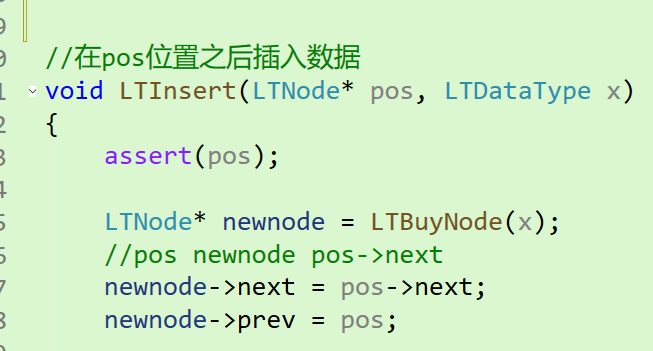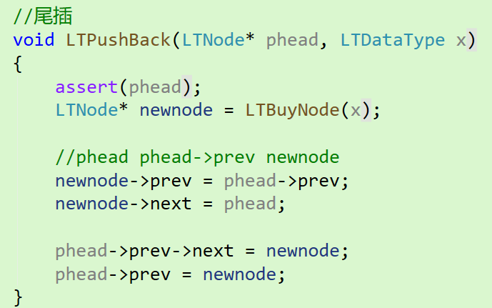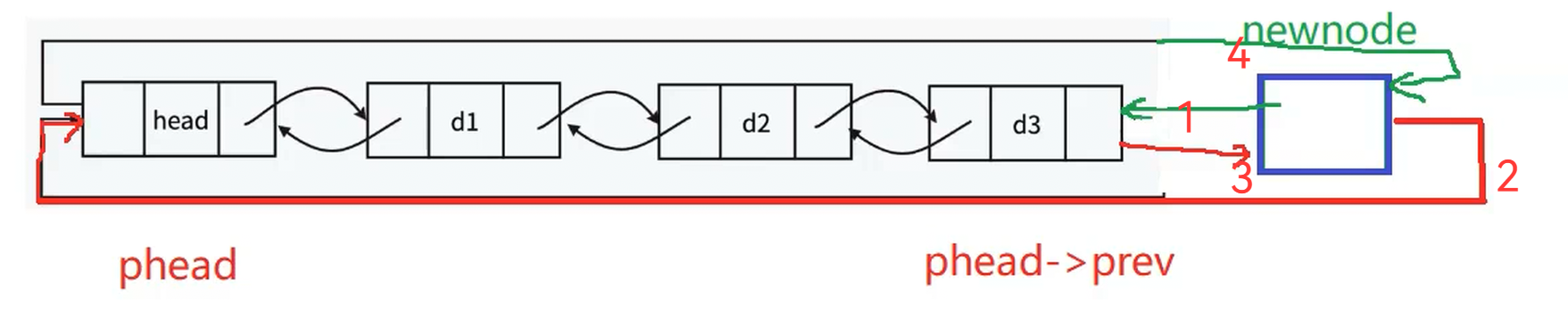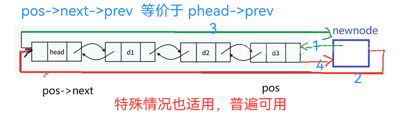 先修改 newnode的两只手 的指向 让它的prev指向前一个 结构体指针