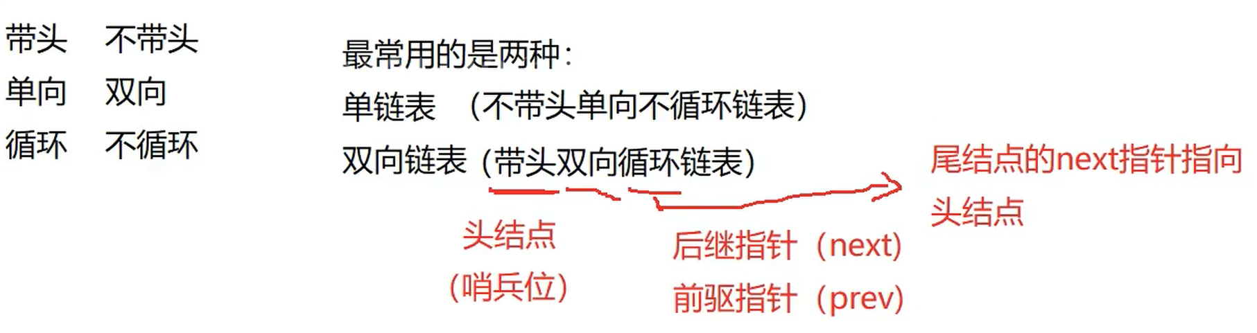 双向链表的 结构体就是 这样子组成的 需要有两个指针域 一个类似单链表 指向下个节点的指针 next