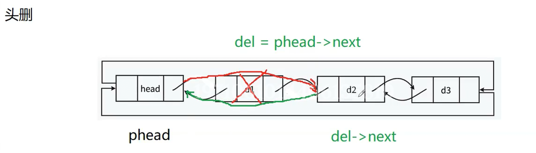 重点理解 del 的运用就是 保留 原来的尾部节点的地址 然后 再删除 ,解决的是,改变指向后 找不到原来的尾部节点的 情况