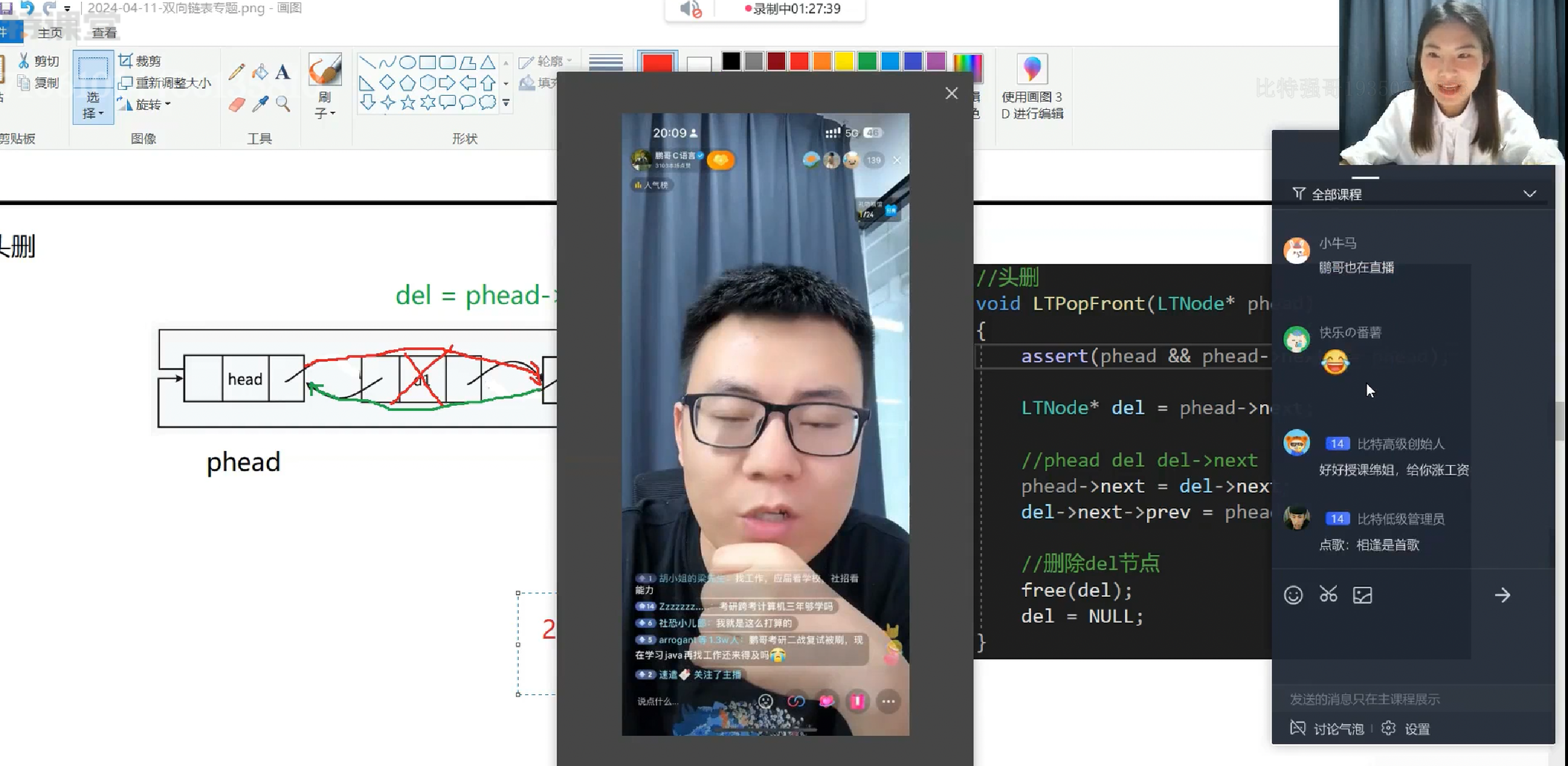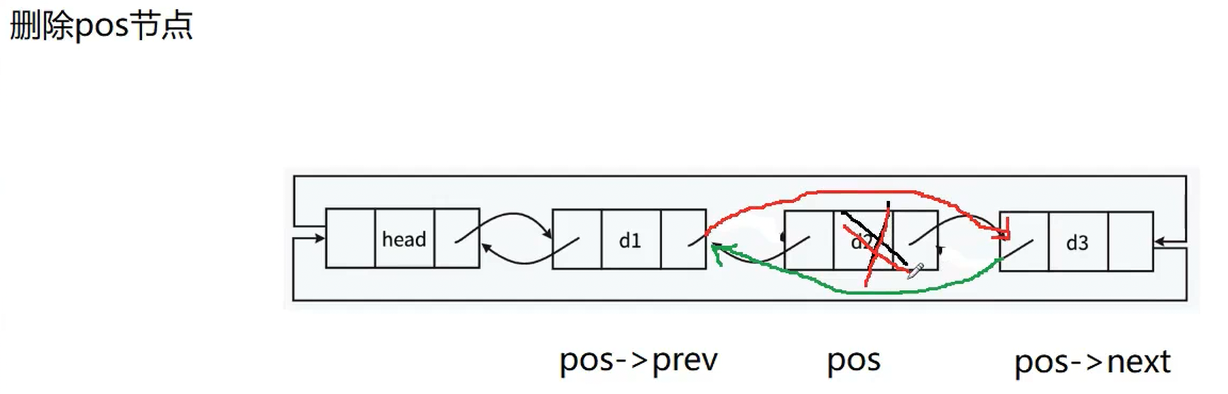 10.在指定位置删除 主要 就是 搞清楚 到底哪几个会变动 然后通过 改变 指向 来跳过 就 删除了 就 前面 后面 本来位置 之间的关系 保持 链条 而且是 双链表的特点