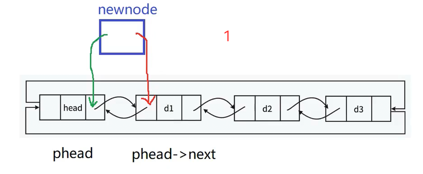 就可以 之间的关系 是先利用 newnode 与 d1之间关系 找到 d1然后在 改变前指针的指向**