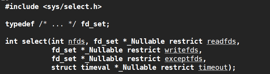 第一个参数nfds 是要关心的fd中,最大的fd的值+1,用于底层遍历文件描述符表。