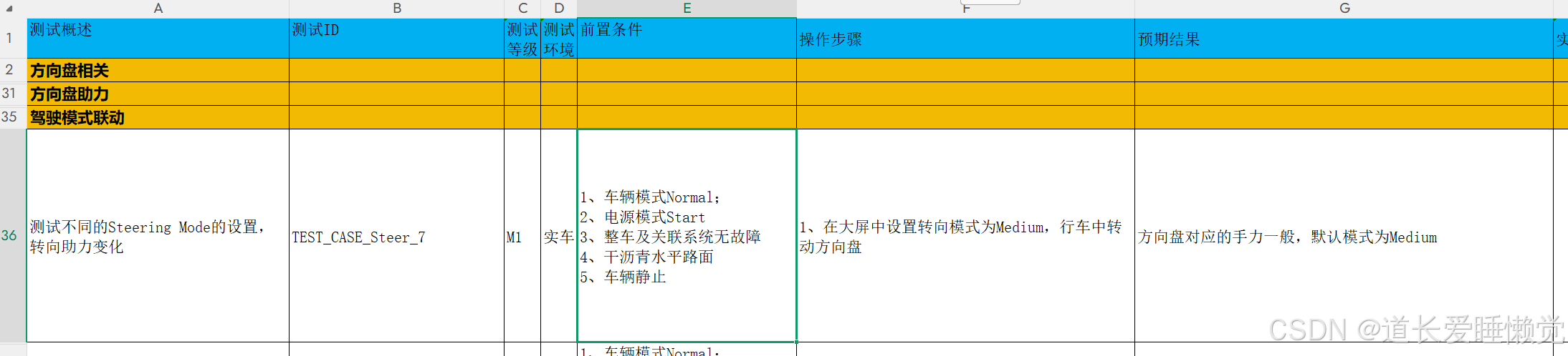 我们车载测试就是测试人员。我们做测试时有一个测试计划。计划中有明确的测试时间,测试的目的(测试的概述),前提条件,测试环境,测试等级,测试步骤,预期结果,实际结果以及备注。