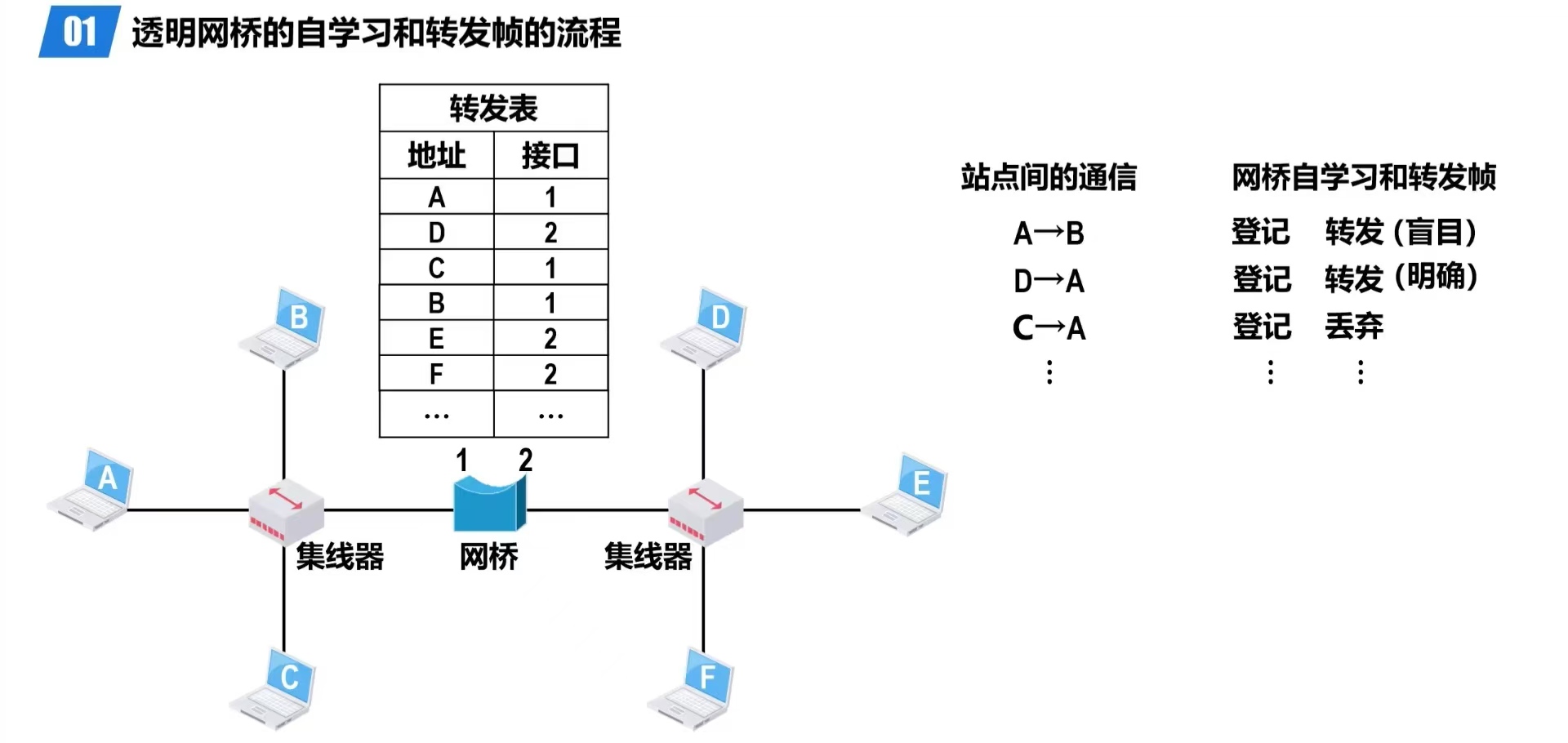 - 未知单播帧/广播帧/组播帧:向除入端口外所有端口泛洪
