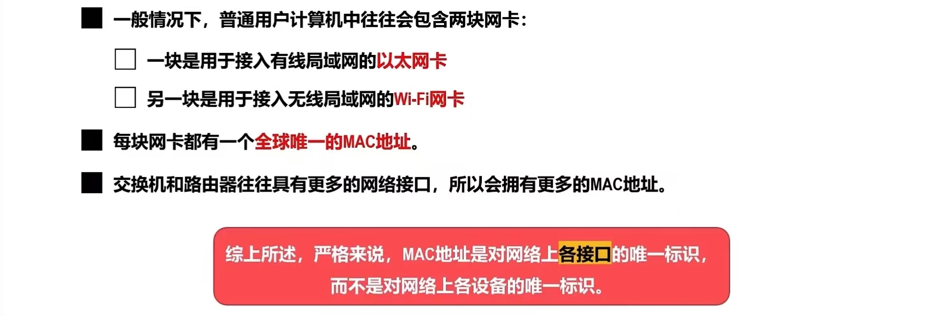 - 拥有 MAC 地址:每块网卡全球唯一的物理地址,用于数据链路层寻址。