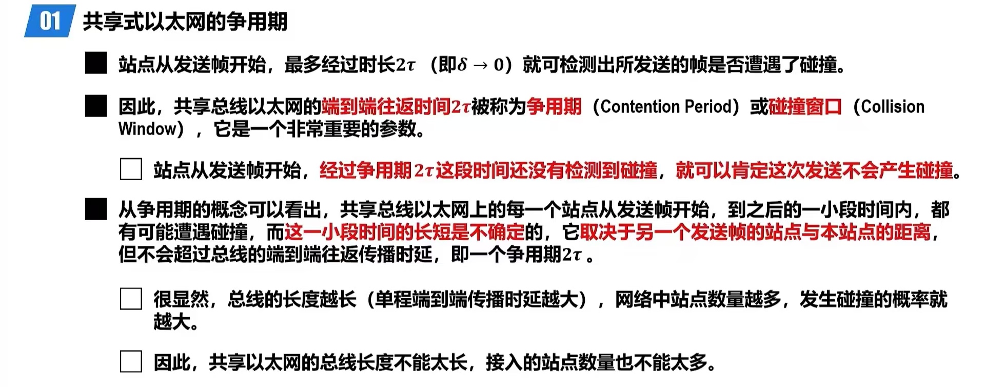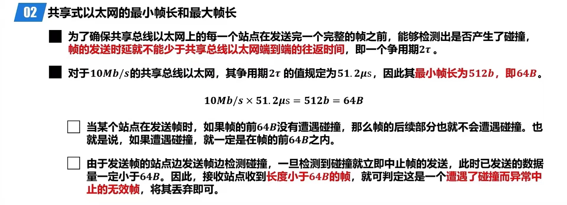 4.2.2 共享式以太网的争用期、最小帧长和最大帧长