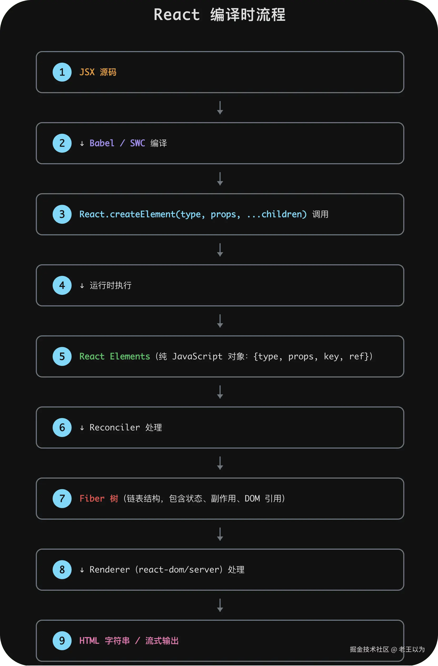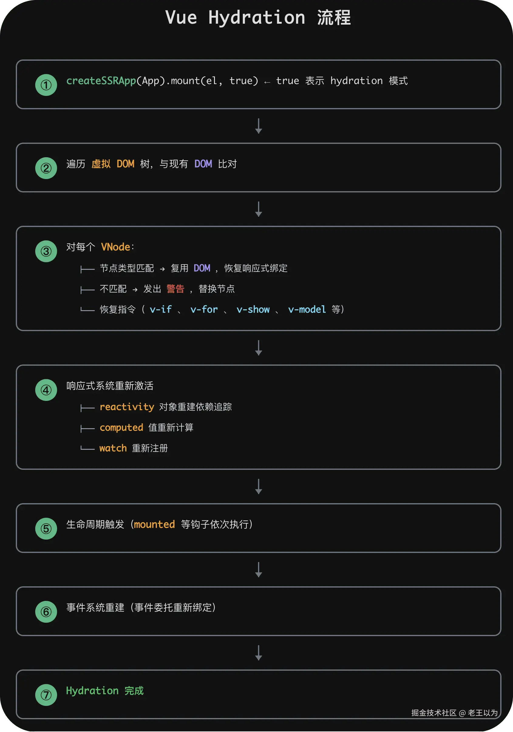 两种策略的对比: React 的分层更"哲学化"------追求函数式纯度与平台绝对解耦;Vue 的分层更"实用化"------保留了响应式系统的连贯性,服务端渲染时仍然利用响应式追踪能力。
