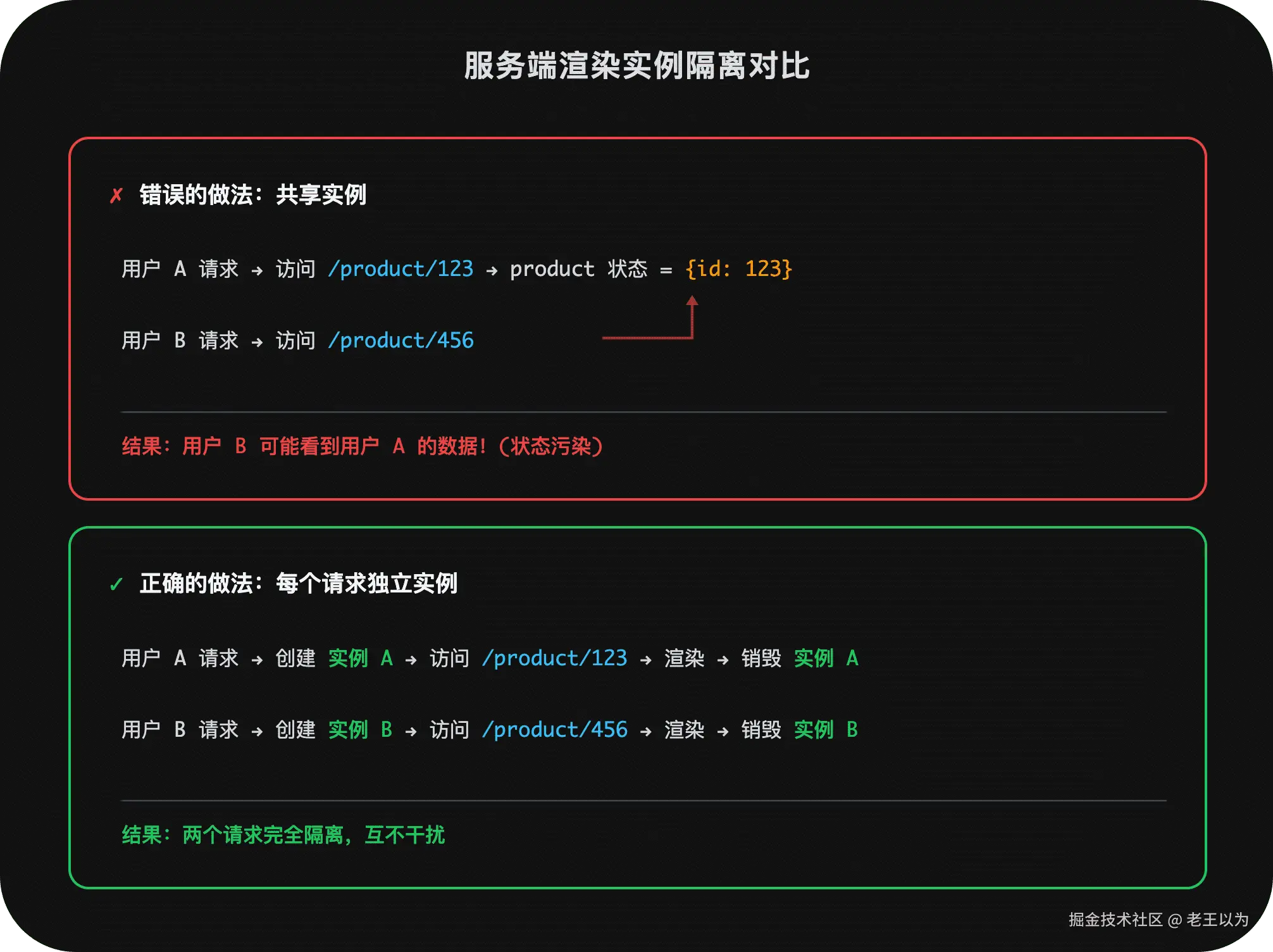 | 渲染时机 | 服务端(每个请求) | 构建时(SSG)或 SSR |