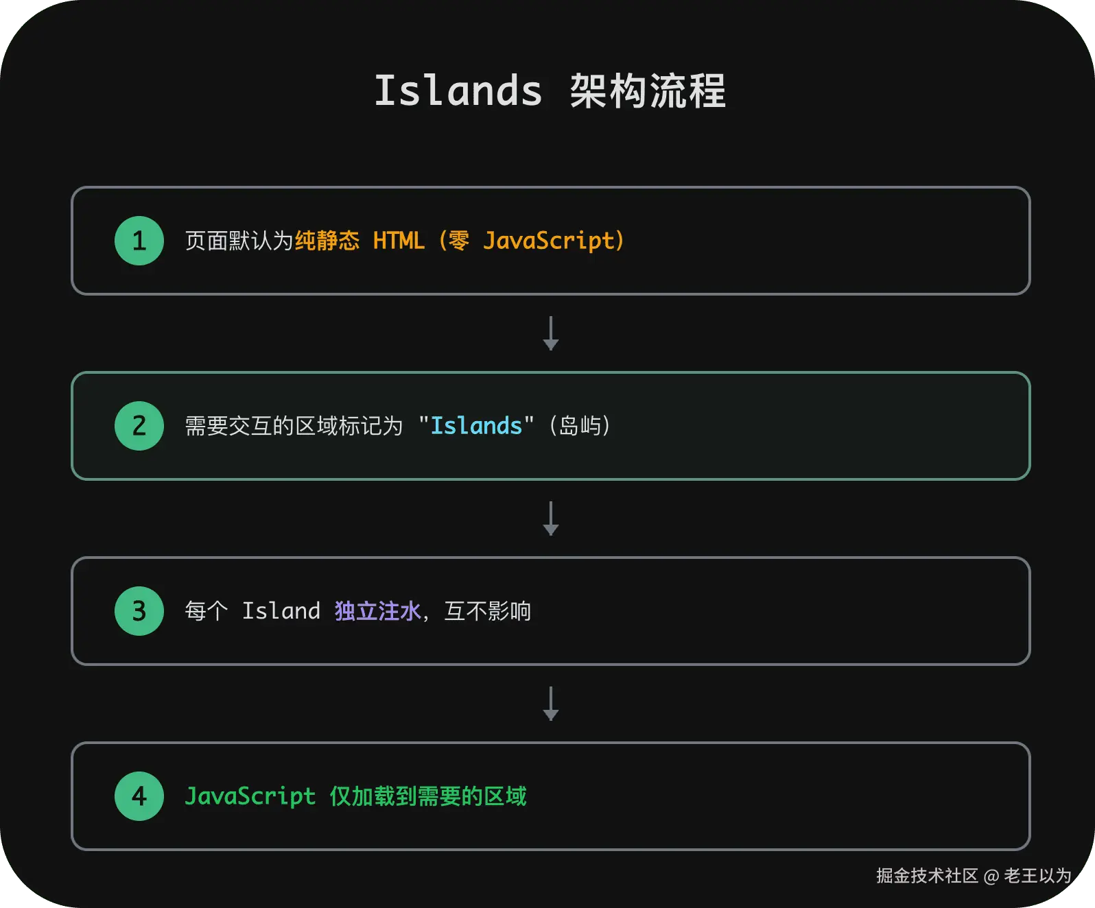 Islands 架构(以 Astro 为代表)提出了与 RSC 不同但理念相通的解题思路。