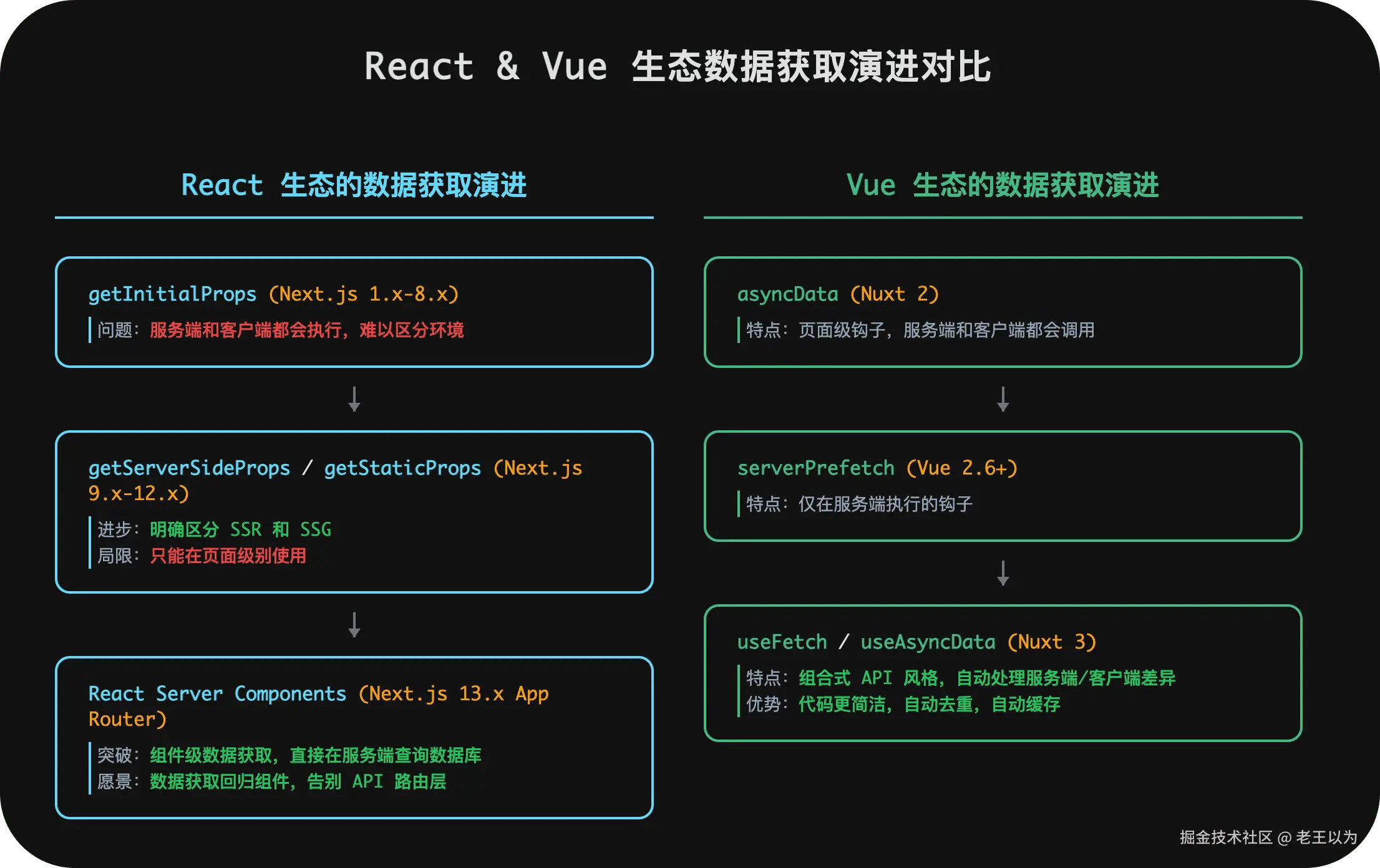 数据获取架构的简化:不再需要复杂的 BFF(Backend for Frontend)层或 API Gateway,组件直接从数据源获取数据。