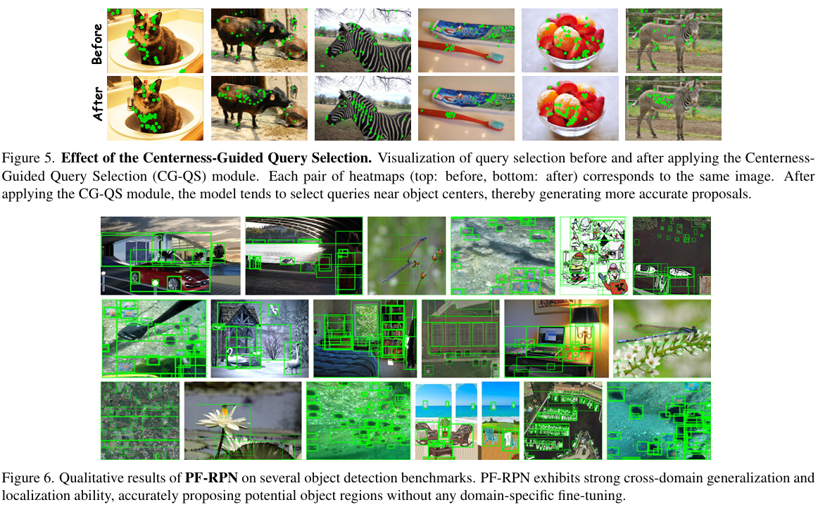 与传统和基于 OVD 的 RPN 方法相比,我们的 PF-RPN 在无需针对未见域重新训练或外部提示的情况下,显著提高了提议质量。使用有限数据训练的 PF-RPN 展现出强大的零样本泛化能力,在跨越不同领域和应用场景的 191919 个数据集上实现了一致的性能提升。